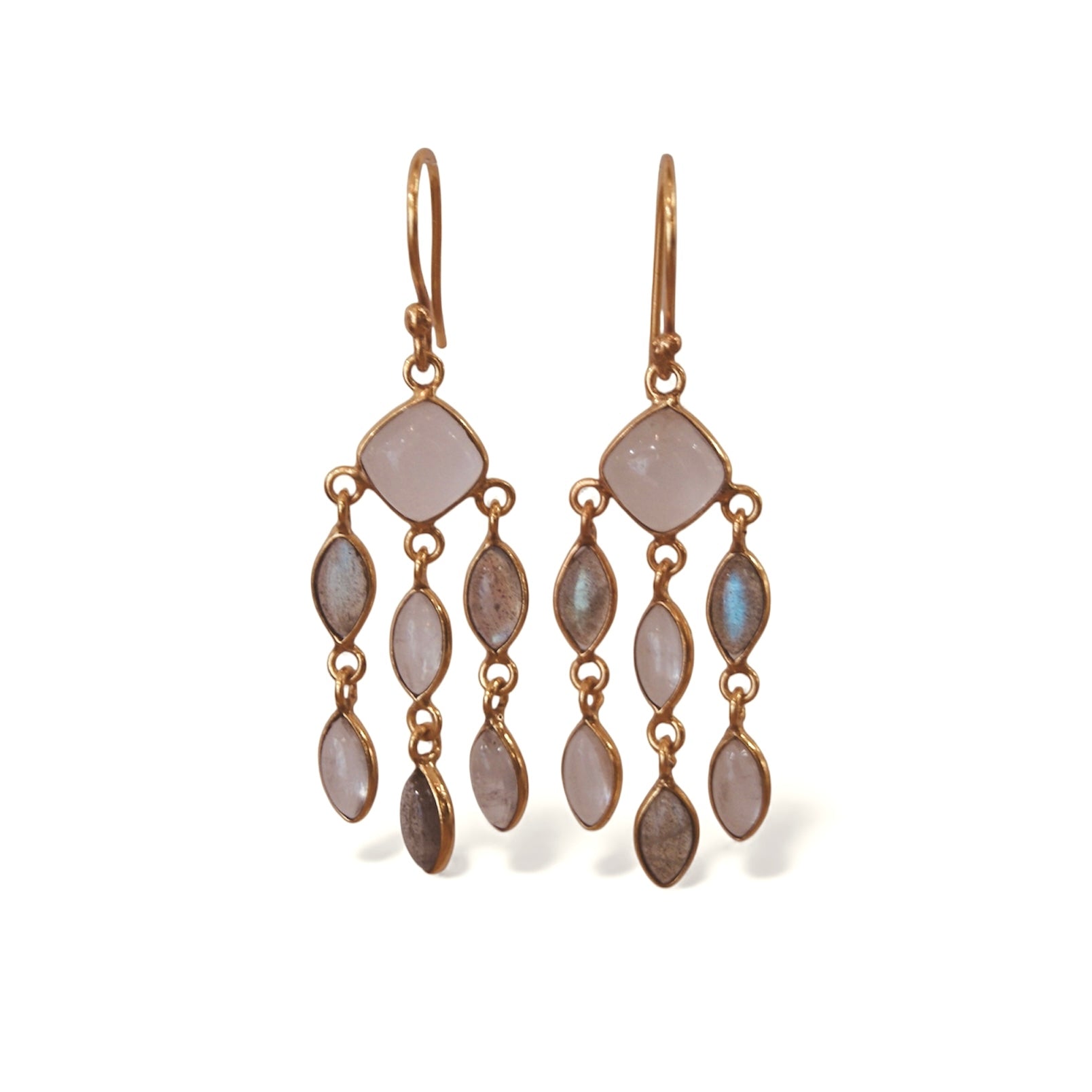 Boucles d'oreilles Fly - pierre de lune et labradorite - Mademoiselle Azalée